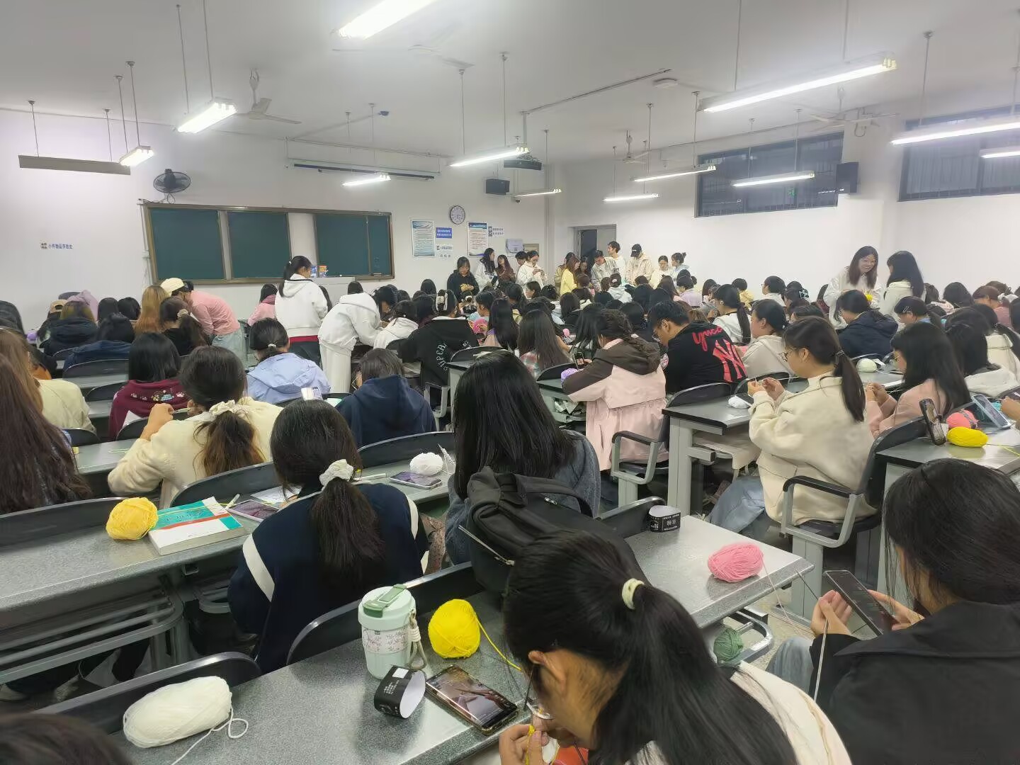 序属季秋,时维霜降。2025年10月23日傍晚5时30分,成都医学院新都校区博学楼A101教室暖意氤氲,一场以“霜降织素帛,围暖寄寒巾”为主题的围巾手作体验活动在此顺利举行。本次活动由心理学院携华慧社、益暖联合社、刀画社、浣纱文学社及心理协会共同主办,吸引众多学子参与。