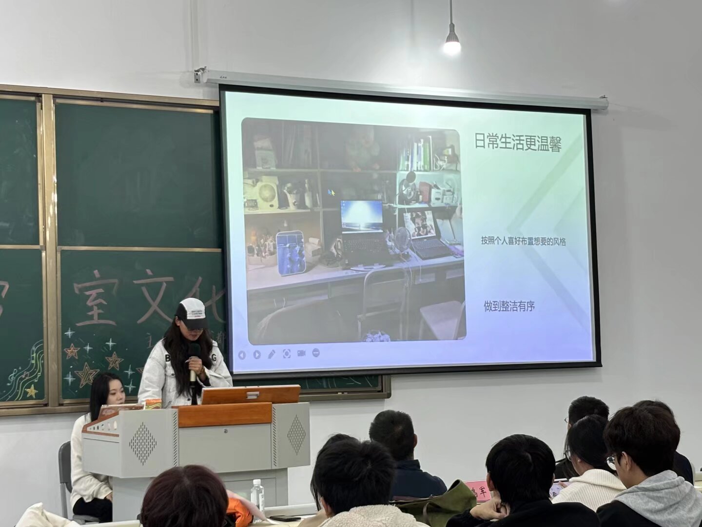 各参赛寝室依次登台,通过PPT讲解生动展现寝室的特色风貌与文化内涵。每位参赛者精神饱满、准备充分,汇报逻辑清晰、创意十足,从不同维度诠释了对寝室“家”的理解与热爱。期间穿插的有奖问答环节,进一步调动了现场氛围,让整场活动更具互动感。