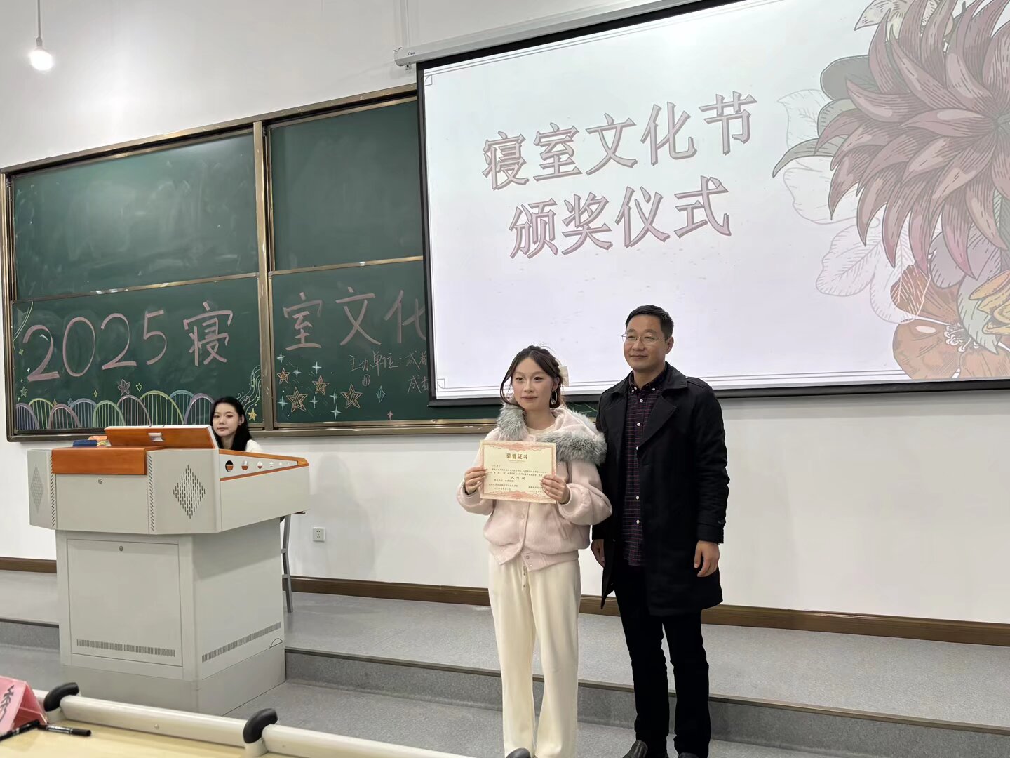 经评委综合打分与线上线下观众投票,F303寝室斩获一等奖,D401、F210寝室荣获二等奖,C526、F206、D402、C504寝室获得三等奖,C504寝室凭借超高人气摘得人气奖。心理学院党总支书记郑崛村对所有获奖寝室表示了热烈祝贺,也肯定了各参赛队伍的努力与付出,同时鼓励同学们以此次活动为契机,继续营造团结友爱、富有特色的寝室氛围,让寝室成为成长路上的温暖港湾。